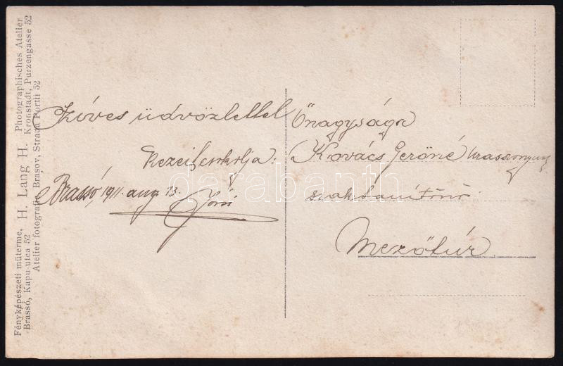1911 Brassó, katonaportré, megírt fotólap, 14×9 cm https://www.darabanth.com/de/437-Fernauktion/437.0/Kunst-Dokumente-andere-Sammelgebiete/Militaria~1000001/1911-Brasso-katonaportre-megirt-fotolap-14C3979-cm~II2841281