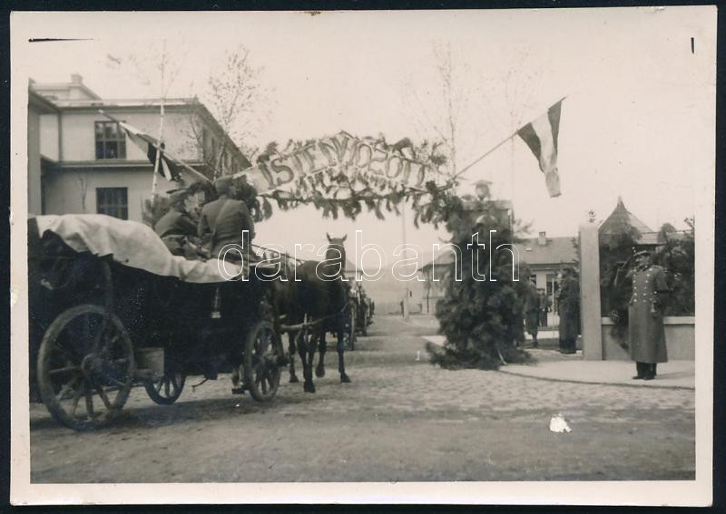 1941 Délvidéki bevonulás, díszkapu Isten hozott felirattal, fotó, 6×9 ... https://www.darabanth.com/de/437-Fernauktion/437.0/Kunst-Dokumente-andere-Sammelgebiete/Militaria~1000001/1941-Delvideki-bevonulas-diszkapu-Isten-hozott-felirattal-foto-6C3979-cm~II2842902