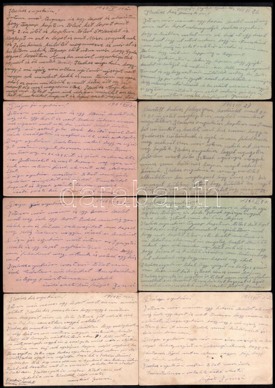 Beschreibung: 1944 össz. 18 db tábori postai levelezőlap II. világháború idejéből, ugyanazon honvédtól Orosházára, Békés megyébe küldve. Részben kissé foltos.