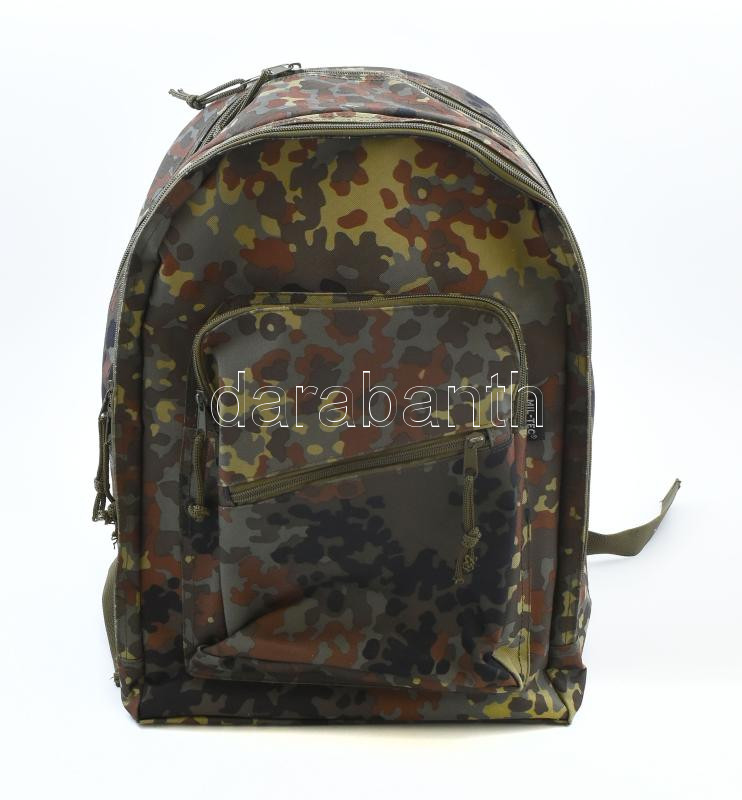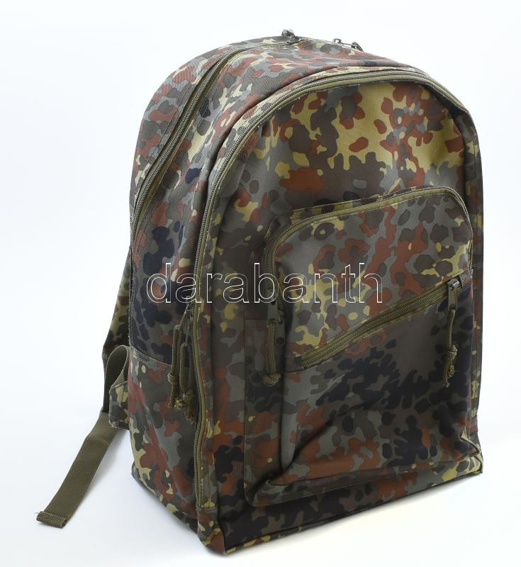 Mil-Tec terepszínű (flecktarn) hátizsák, 41x38 cm + Katonai barettsapka, Osztrák Vöröskeresztes sapkajelvénnyel, jelzett: Slama-Kappe Wien, jó állapotban / Camo backpack + Military beret cap with Austrian Red Cross badge, good condition