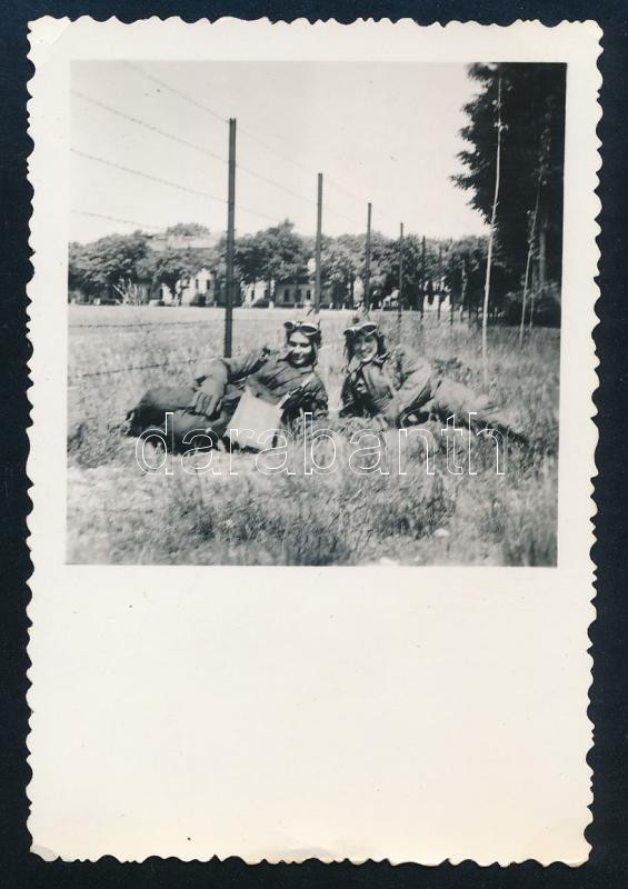 cca 1950 Női harckocsizók teljes felszerelésben, fotó, 9x6 cm https://www.darabanth.com/de/437-Fernauktion/437.0/Kunst-Dokumente-andere-Sammelgebiete/Militaria~1000001/cca-1950-Noi-harckocsizok-teljes-felszerelesben-foto-9x6-cm~II2852020