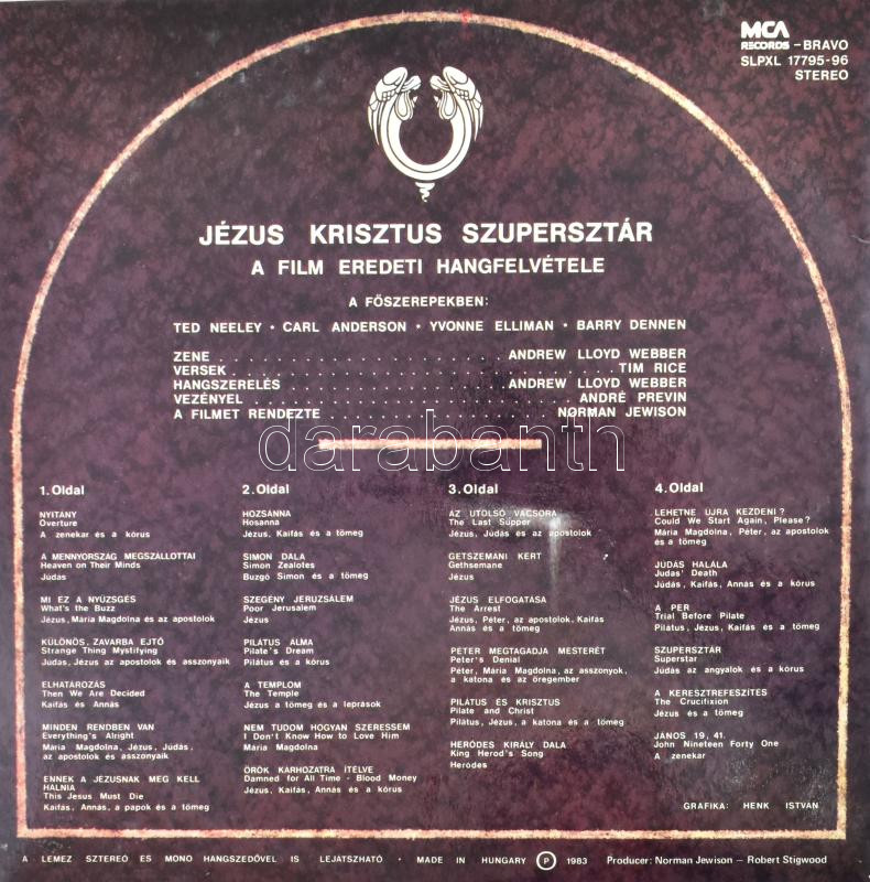 Jézus Krisztus szupersztár dupla LP 1983 MCA Records jó állapotban https://www.darabanth.com/de/437-Fernauktion/437.0/Kunst-Dokumente-andere-Sammelgebiete/Musik-Schalplatten-und-CD-s-DVD-s~1000008/Jezus-Krisztus-szupersztar-dupla-LP-1983-MCA-Records-jo-allapotban~II2854741