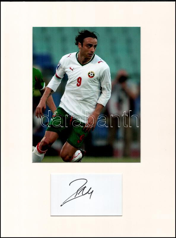 Dimitar Berbatov (1981- ) volt bolgár labdarúgó autográf aláírása és fotója, paszpartuban, tanúsítvánnyal, teljes méret: 40x30 cm / Dimitar Berbatov former Bulgarian footballer's autograph signature and photo, mounted, with certificate