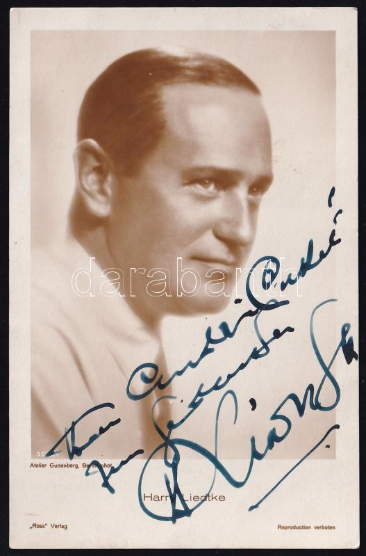 Beschreibung: Harry Liedtke (1882- 1945) német színész dedikált fotólap