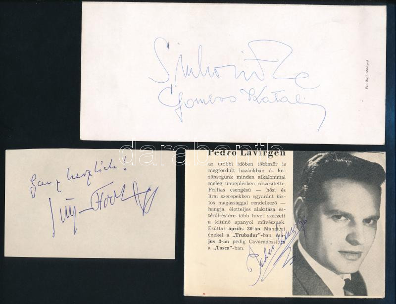 Beschreibung: Sinkovits Imre és Gombos Katalin autográf aláírása műsorfüzeten, + Vasile Martinoiu, Pedro Lavirgen operaénekesek aláírásai