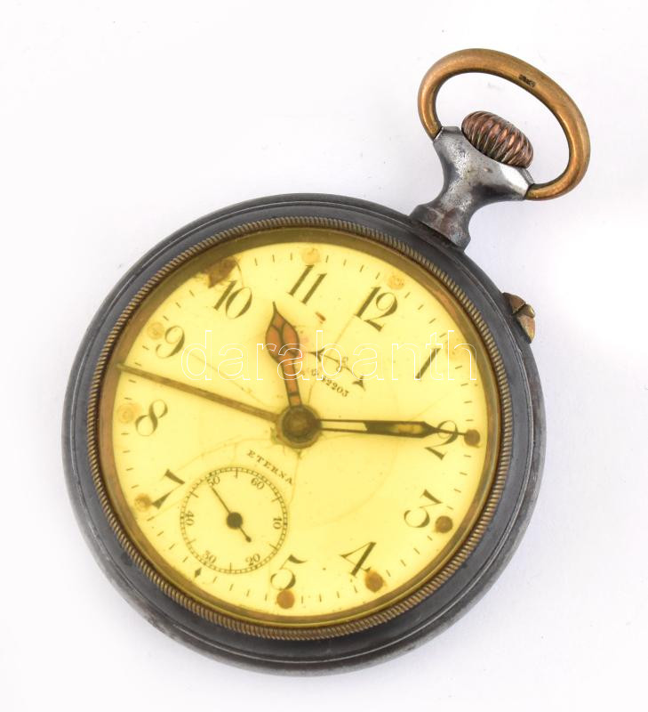 Eterna régi zsebóra, sérülésekkel, működik, d: 50 mm https://www.darabanth.com/de/437-Fernauktion/437.0/Kunst-Dokumente-andere-Sammelgebiete/Uhren~500011/Eterna-regi-zsebora-serulesekkel-mukodik-d-50-mm~II2849344