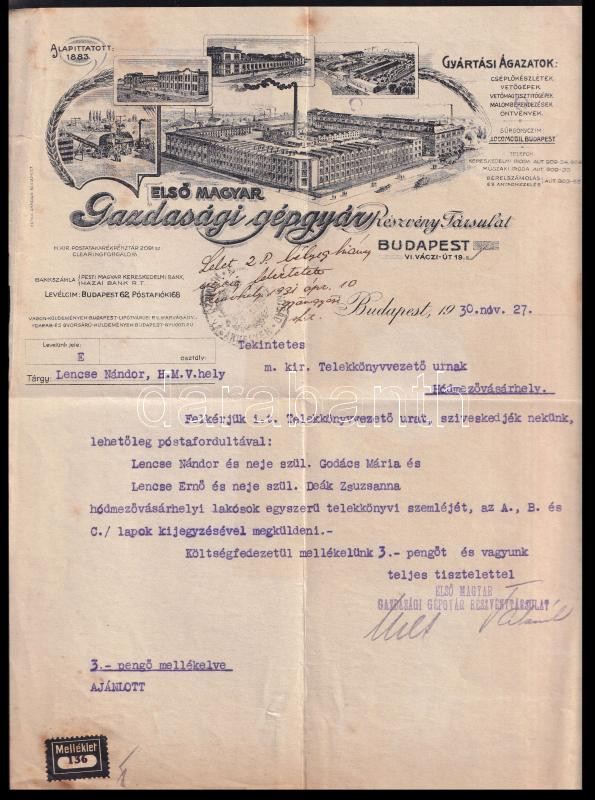 1930ó Első Magyar Gazdasági Gépgyár számla https://www.darabanth.com/de/437-Fernauktion/437.0/Kunst-Dokumente-andere-Sammelgebiete/Werbungen~500025/1930o-Elso-Magyar-Gazdasagi-Gepgyar-szamla~II2844901