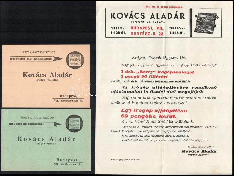 cca 1930 Kovács Aladár írógép vállalat 4 db reklám nyomtatvány https://www.darabanth.com/de/437-Fernauktion/437.0/Kunst-Dokumente-andere-Sammelgebiete/Werbungen~500025/cca-1930-Kovacs-Aladar-irogep-vallalat-4-db-reklam-nyomtatvany~II2844931