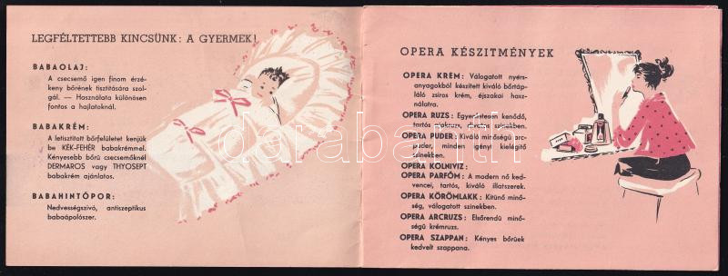 Beschreibung: cca 1965 Kozmetikai, rajzos dekoratív termékreklámfüzet, szép állapotban, 8p
