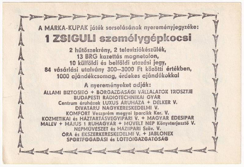 Beschreibung: 1981. "Márka Sorsjegy" I. sorozat, "0 314 923" sorszámú sorsjegye T:AU kis sarokhajlás
