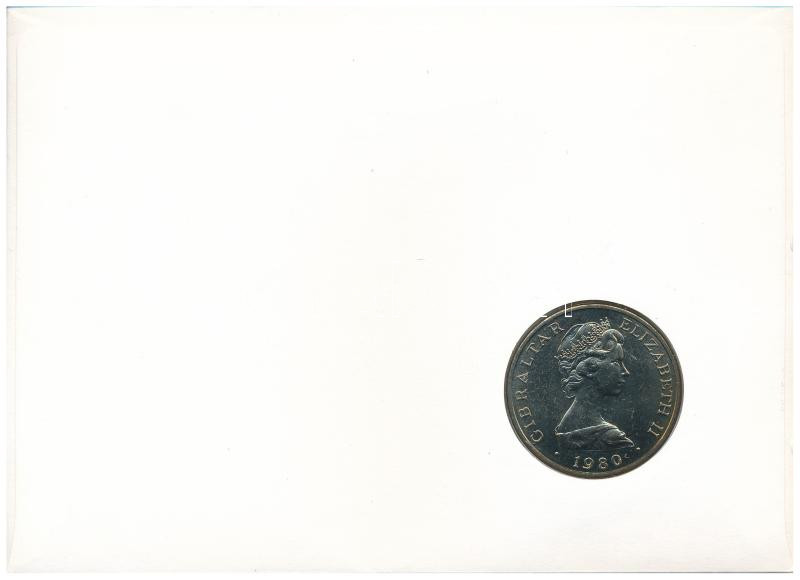 Gibraltár 1980. 1C Cu-Ni "Horatio Nelson halálának 175. évfordulója" forgalomba nem került emlékkiadás felbélyegzett borítékban, bélyegzéssel, német nyelvű leírással T:1- Gibraltar 1980. 1 Crown Cu-Ni "175th Anniversary of the death of Lord Horatio Nelson" non-circulating commemorative coin in envelope with stamp, cancellation, and a description in german C:AU Krause KM#12