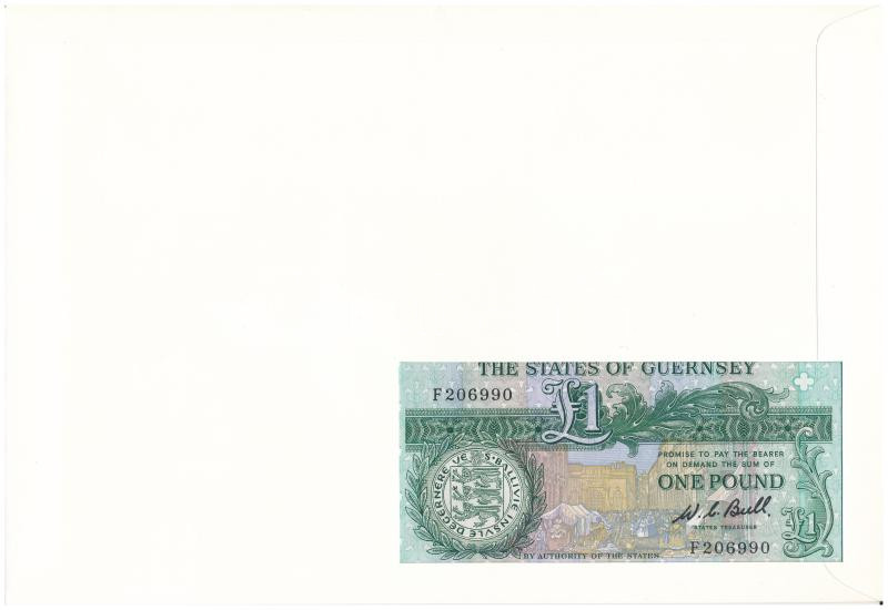 Guernsey 1980-1989. 1 Pound in envelope with stamp and cancellation C:UNC