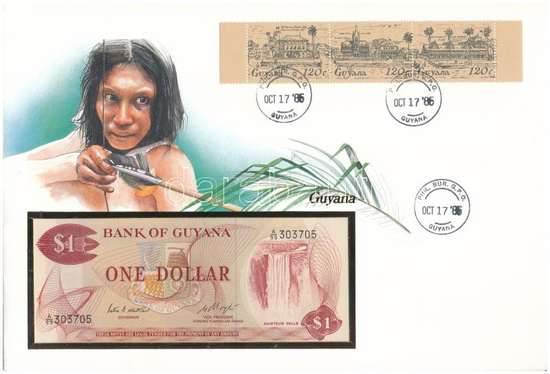 Guyana 1983. 1$ felbélyegzett borítékban, bélyegzéssel T:1 Guyana 1983... https://www.darabanth.com/de/437-Fernauktion/437.0/Numismatik/Umschlage-mit-Munzen-und-Banknoten~2000004/Guyana-1983-1USD-felbelyegzett-boritekban-belyegzessel-T1-Guyana-1983-1-Dollar-in-envelope-wi~II2844299