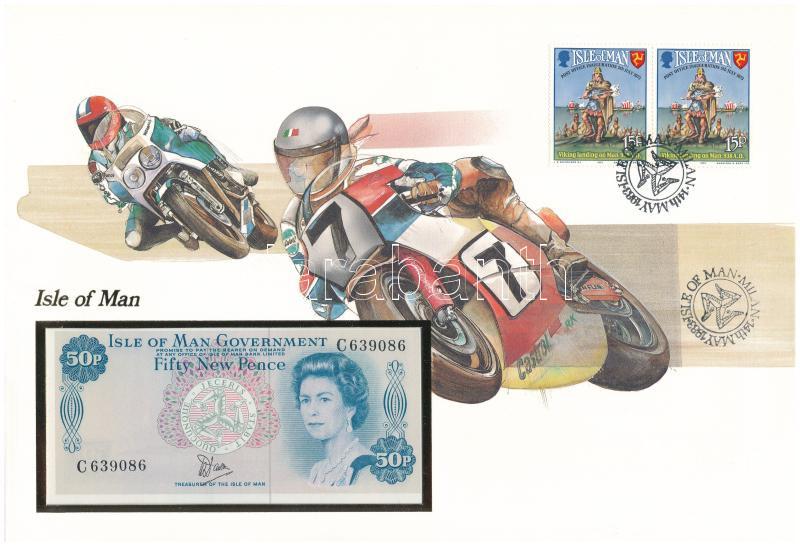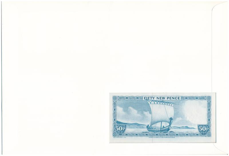 Man-sziget DN (1979) 50p felbélyegzett borítékban, alkalmi bélyegzéssel T:UNC Isle of Man ND (1979) 50 Pence in envelope with stamp and cancellation C:UNC