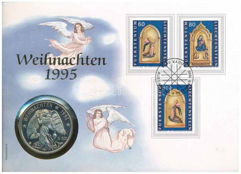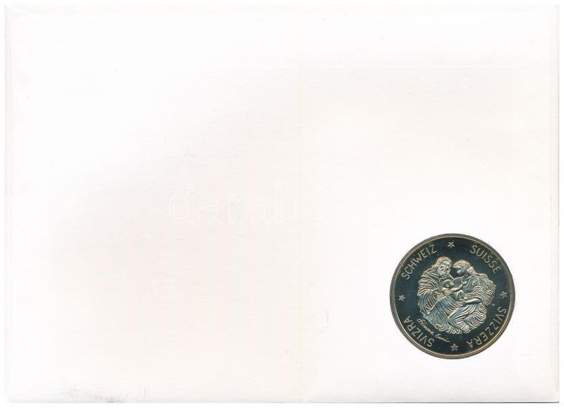 Svájc 1995. 5E Cu-Ni "Karácsony 1995", érmés borítékban, bélyegzéses bélyeggel, német nyelvű ismertetővel T:PP Switzerland 1995. 5 Ecu Cu-Ni "Christmas 1995" in coin envelope with stamp and cancellation, with information in German C:PP