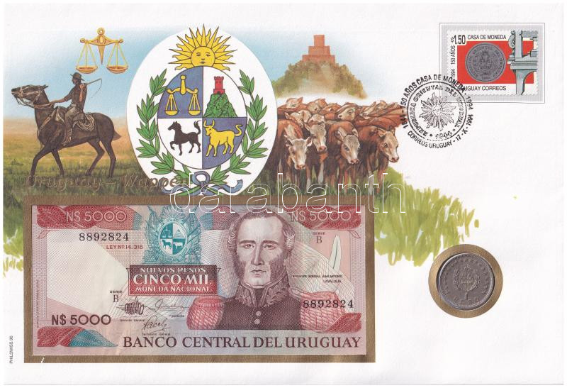 Uruguay 1983. 5000P + 1960. 1P Cu-Ni felbélyegzett borítékban, alkalmi... https://www.darabanth.com/de/437-Fernauktion/437.0/Numismatik/Umschlage-mit-Munzen-und-Banknoten~2000004/Uruguay-1983-5000P-plus-1960-1P-Cu-Ni-felbelyegzett-boritekban-alkalmi-belyegzessel-TUNC-AU-Ur~II2846981