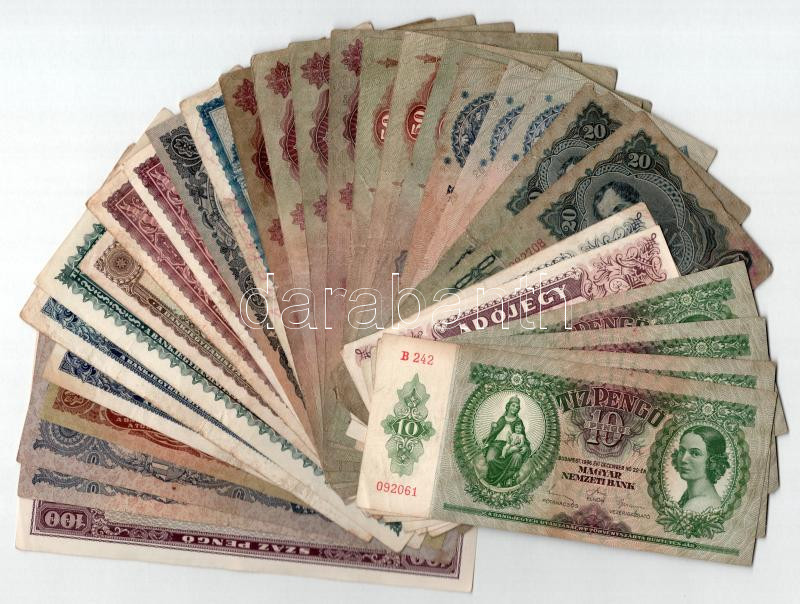 Beschreibung: 1930-1945. 30 darabos Pengő tétel, közte AP (2xklf) T:XF-VG közte lyuk, felülbélyegzés, firka