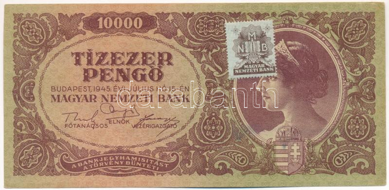 Beschreibung: 1945. 10.000P "MNB" bélyeggel T:AU