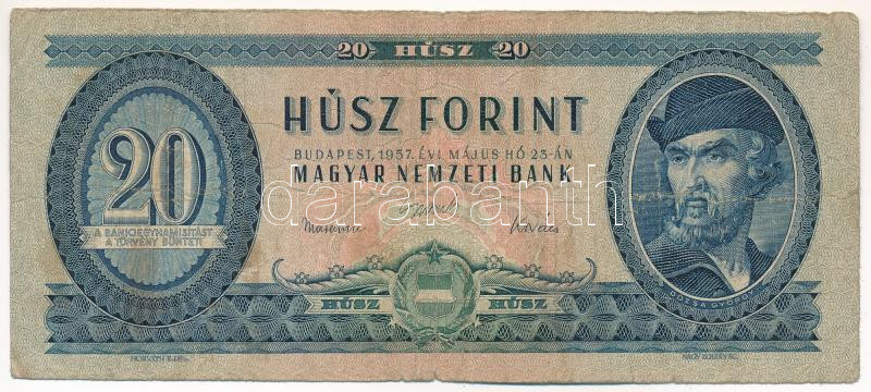 1957. 20Ft "C 023 016888" T:VG Adamo F11 https://www.darabanth.com/de/437-Fernauktion/437.0/Numismatik/Ungarische-Banknoten~2000007/1957-20Ft-C-023-016888-TVG-Adamo-F11~II2851208