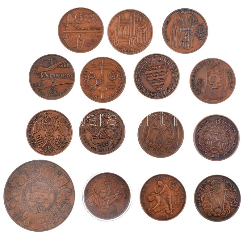 1987-2001. "MÉE Alba Regia Szervezete - Székesfehérváron koronázott, eltemetett királyok" bronz emlékéremsorozat (42,5mm, 14xklf) + 2001. "Géza fejedelem 972-997 / Székesfehérváron koronázott, eltemetett királyok 1987-2001" kétoldalas bronz emlékérem, a sorozat záróérme (70mm) T:1,1-