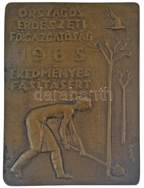 Beschreibung: Szabó Iván (1913-1998) 1965. "Országos Erdészeti Főigazgatóság - Eredményes fásításért" bronzírozott alumínium plakett, hátoldalán két rögzítőponttal (112x85mm) T:1-