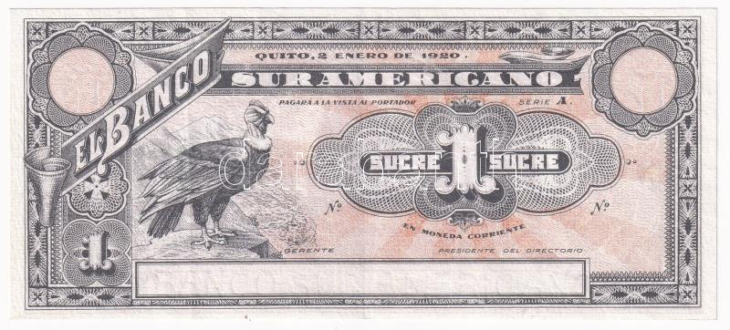 Ecuador / Banco Sur Americano 1920. 1 Sucre C:F fine paper