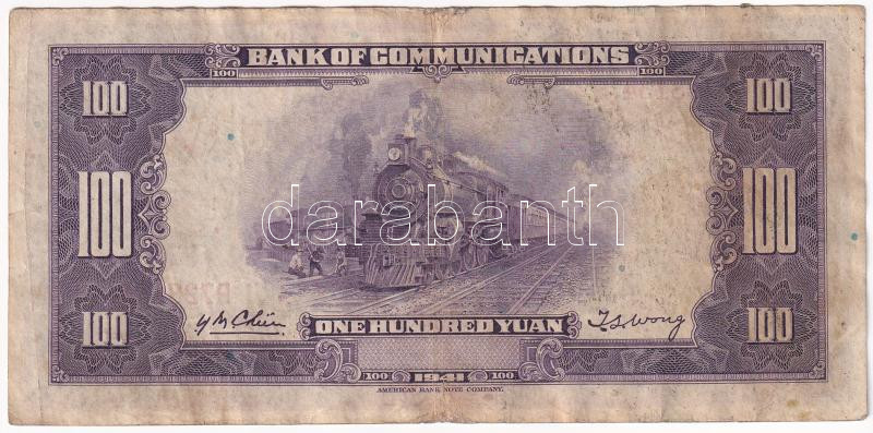 Kínai Köztársaság / Bank of Communications 1941. 100Y T:F fo. Chinese ... https://www.darabanth.com/de/437-Fernauktion/437.0/Numismatik/Weltweit-Banknoten~2000013/Kinai-Koztarsasag-Bank-of-Communications-1941-100Y-TF-fo-Chinese-Republic-Bank-of-Communi~II2845129