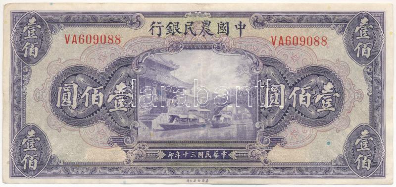 Kínai Köztársaság / Farmers Bank of China 1941. 100Y "VA609088" T:F