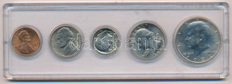 USA 1982. 1 Cent + 1982P 5 Cent Zn - 1/2 Dollar Cu-Ni (4xdiff) coin set in plastic case C:UNC