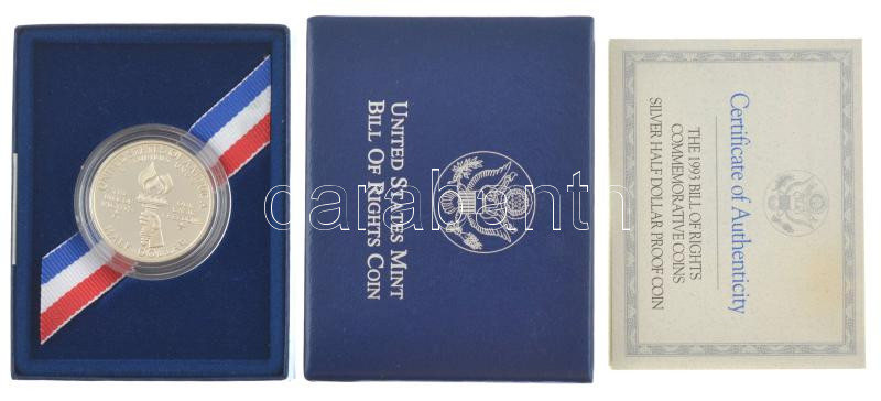 Amerikai Egyesült Államok 1993S 1/2$ Ag "Jognyilatkozat" tanúsítvánnyal, dísztokban T:PP USA 1993S 1/2 Dollar Ag "Bill of Rights" with certificate, in display case C:PP Krause KM#240