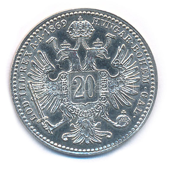 Beschreibung: Ausztria 1869. 20kr Ag "Ferenc József" T:1- Austria 1869. 20 Kreuzer Ag "Franz Joseph" C:AU Krause KM#2212