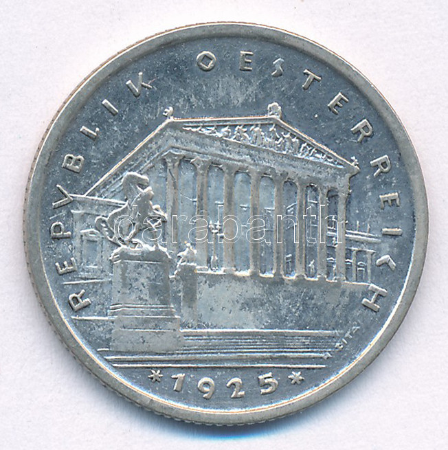 Austria 1925. 1 Schilling Ag C:XF... https://www.darabanth.com/de/437-Fernauktion/437.0/Numismatik/Weltweit-Munzen~2500001/Ausztria-1925-1Sch-Ag-TXF-patina--Austria-1925-1-Schilling-Ag-CXF-patina--Krause-KM232840~II2851127