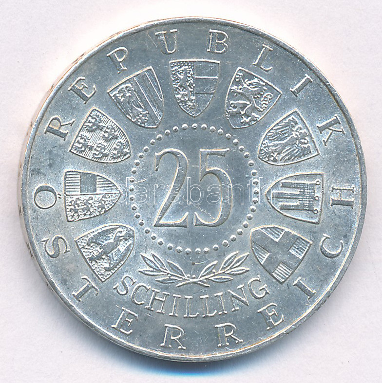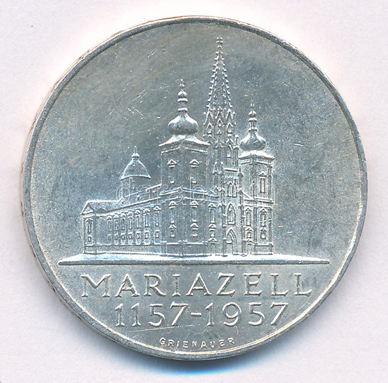 Austria 1957. 25 Schilling Ag "8th Centennial - Mariazell Basilica" C:XF,VF scratch, small ding