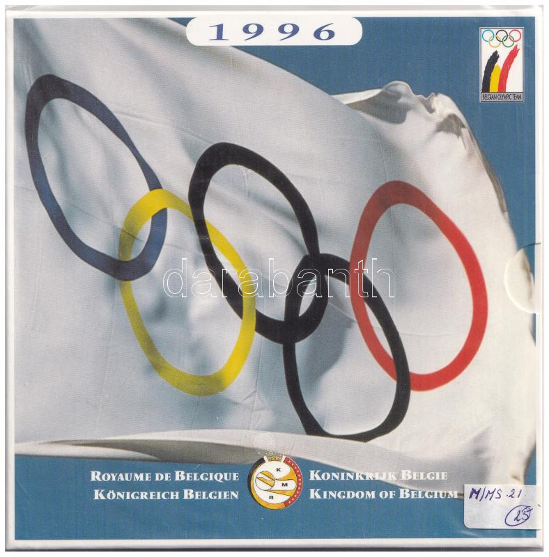 Belgium 1996. 50c - 20Fr (10x) "Atlantai Olimpia" forgalmi szett + zseton karton dísztokban, eredeti bontatlan fóliacsomagolásban T:BU Belgium 1996. 50 Centimes - 20 Francs (10x) "Atlanta Olympics" coin set + token in case, in the original unopened foil packing C:BU