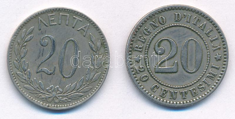 Görögország 1894. 20l Cu-Ni + Olaszország 1894. 20c Cu-Ni T:XF,VF pati... https://www.darabanth.com/de/437-Fernauktion/437.0/Numismatik/Weltweit-Munzen~2500001/Gorogorszag-1894-20l-Cu-Ni-plus-Olaszorszag-1894-20c-Cu-Ni-TXF-VF-patina-karc-Greece-1894-20-~II2848254
