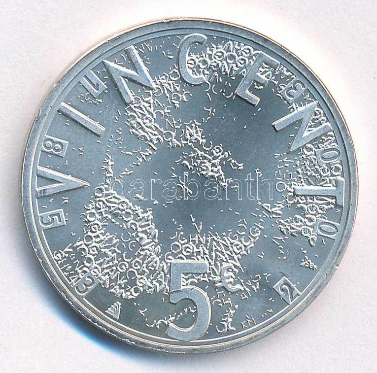Netherlands 2003. 5 Euro Ag "Beatrix / Vincent Van Gogh" in capsule C:BU fingerprints