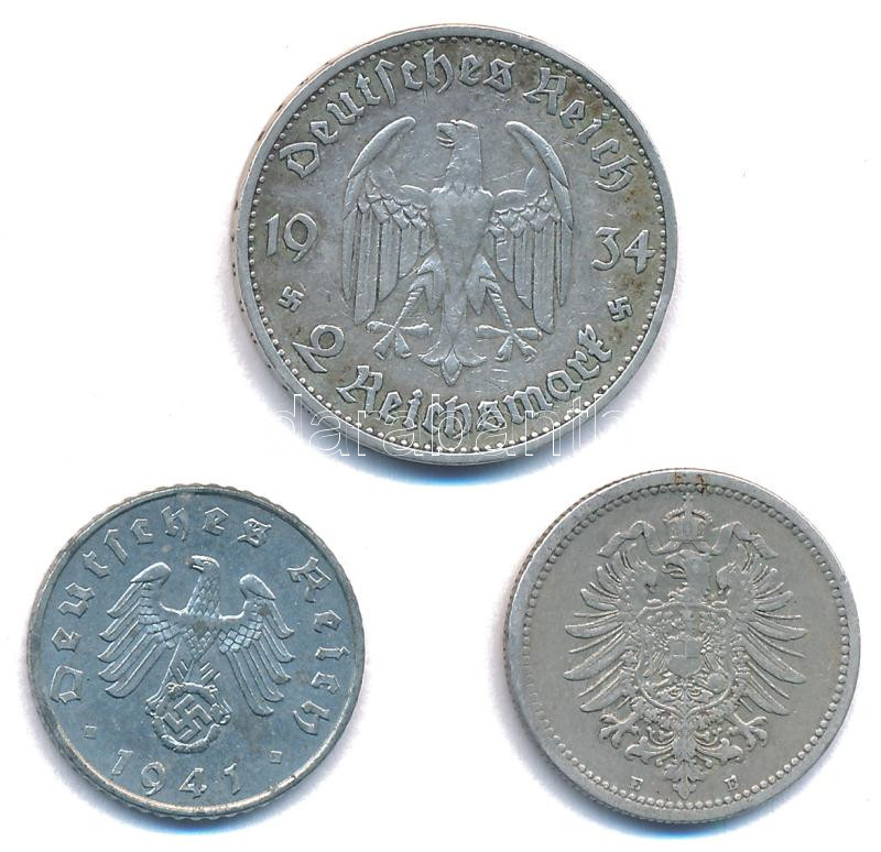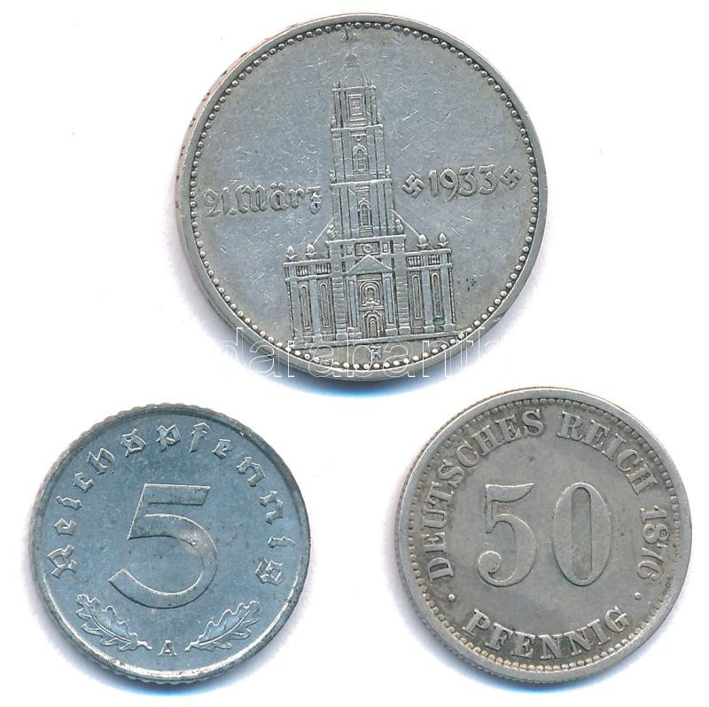 Német Birodalom 1876E 50pf Ag + Német Harmadik Birodalom 1934A 2M Ag "Garnisonkirche" + 1941A 5pf T:2,2- folt