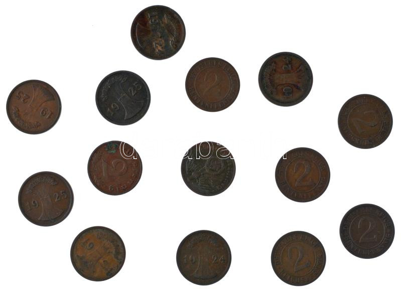 Németország / Weimari Köztársaság 1923-1938. 2pf bronz (14db/7xklf) T:XF,VF patina Germany / Weimar Republic 1924-1938. 2 Pfennig bronze (14pcs/7xdiff) C:XF,VF patina