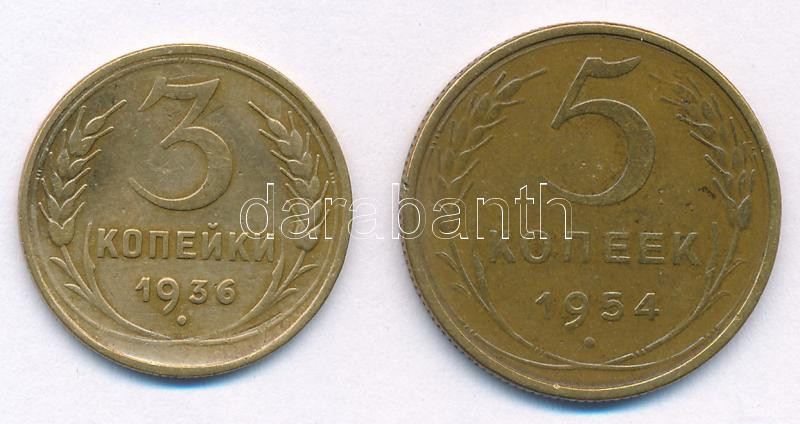 Szovjetunió 1936. 3k Al-bronz + 1954. 5k Al-bronz T:XF-F karc Soviet Union 1936. 3 Kopecks Al-bronze + 1954. 5 Kopecks Al-bronze C:XF-F scratch
