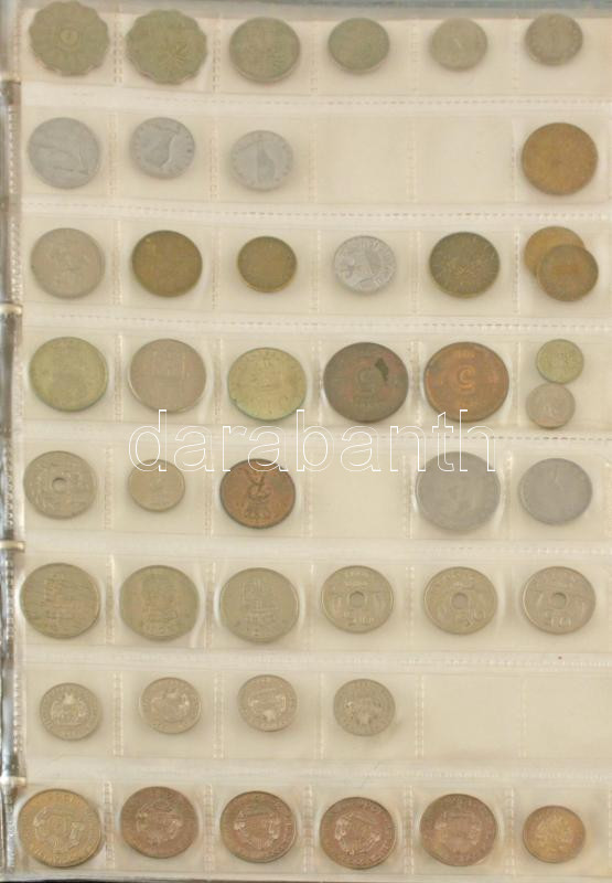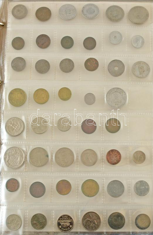Vegyes, nagyrészt külföldi érmetétel (~307db) 11db berakólapon egy nagy alakú műbőr mappában, közte Amerikai Egyesült Államok, Hollandia, Lengyelország, Finnország, Dánia stb T:vegyes Mixed, mostly foreign coin lot (~307pcs) arranged in a faux leather album, with coin from Netherlands, USA, Poland, Finland, Denmark etc C:mixed