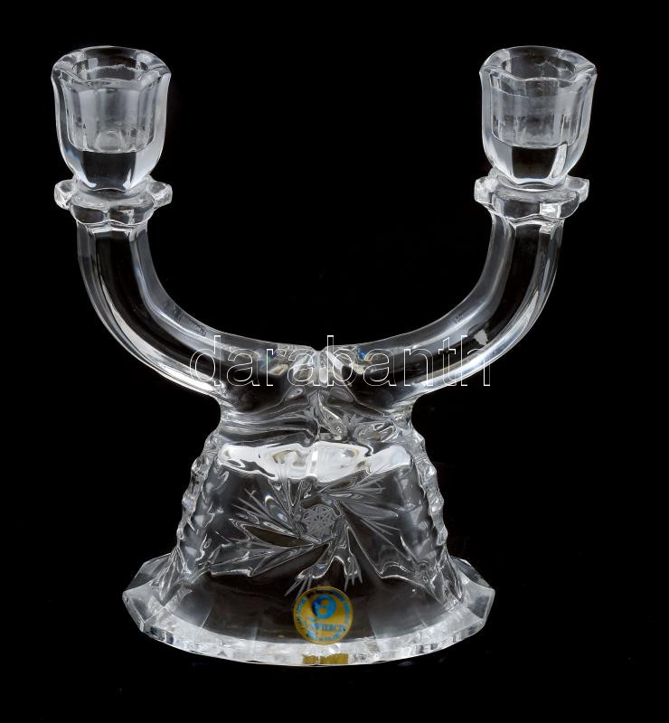 Beschreibung: Ólomkristály gyertyatartó, jelzett kétágú