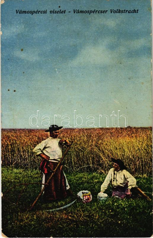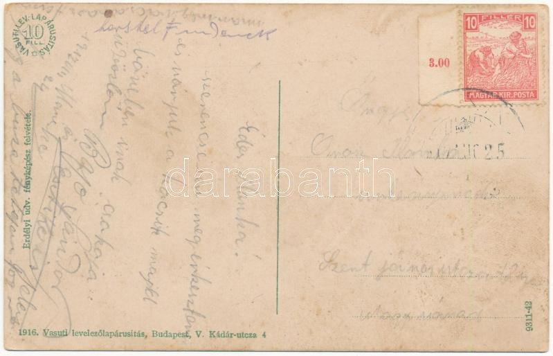 1917 Vámospércsi viselet, magyar folklór. Vasúti levelezőlapárusítás 1916. Erdélyi udvari fényképész felvétele / Hungarian folklore from Vámospércs (EK)