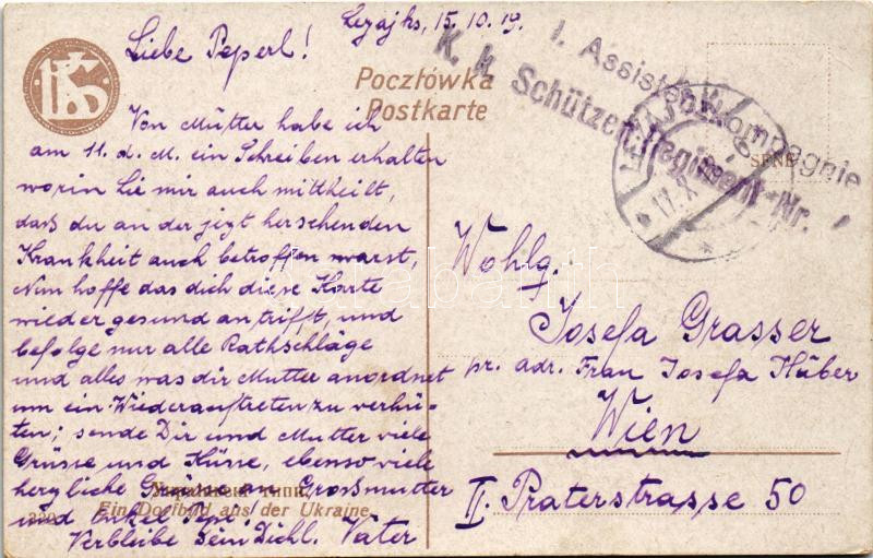 Beschreibung: 1918 Ein Dorfbild aus der Ukraine / Ukrainian folklore + "I. Assistenzkompagnie K.k. Schützen-Regiment Nr. " (EK)