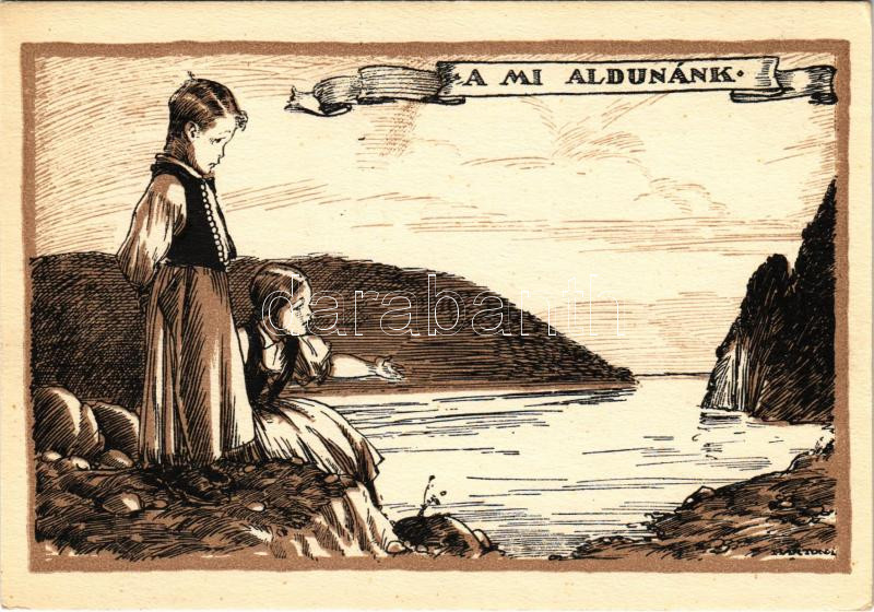 A mi Aldunánk. Buda, Mohács, Nándornál elfutó, tán honom könnye vagy te nagy folyó? Kiadja a Magyar Nemzeti Szövetség, Hornyánszky Viktor rt. / Hungarian irredenta propaganda art postcard from Orsova s: Márton L. (EK)