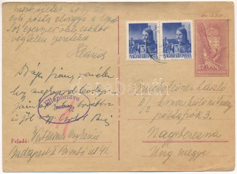 1944 Buchsteiner László zsidó KMSZ (közérdekű munkaszolgálatos) tábori posta a II/2. kmsz különítmény nagybereznai munkatáborba. Judaika / WWII Letter for a Jewish labor serviceman from the labor camp of Velykyi Bereznyi. Judaica (EK)
