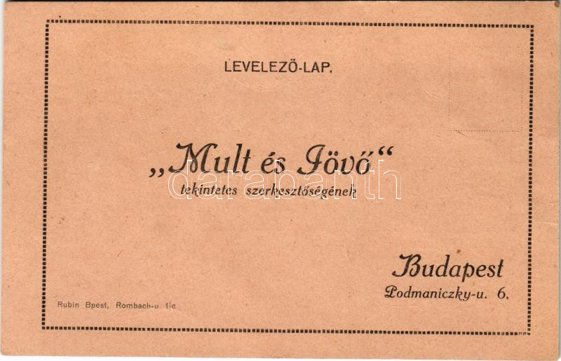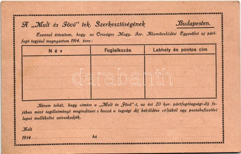 "Múlt és Jövő" zsidó kulturális folyóirat megrendelőlapja. Országos Magy. Izraelita Közművelődési Egyesület pártfogó tagjának 1914. évi nyereménye. Judaika / Hungarian Jewish magazine (EK)