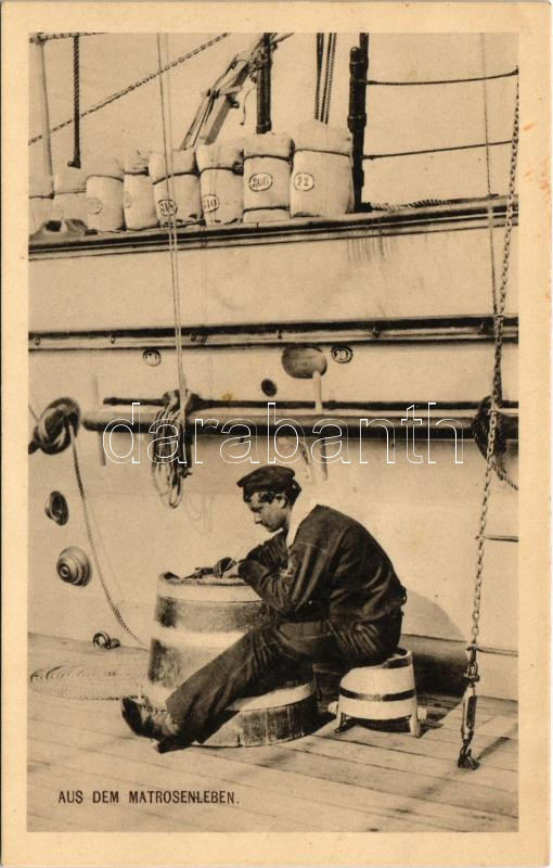 Aus dem Matrosenleben. K.u.K. Kriegsmarine Matrose / WWI Austro-Hungarian Navy, mariner washing on board. Phot. Alois Beer. Verlag F. W. Schrinner, Pola 1916. (ragasztónyom / glue mark)