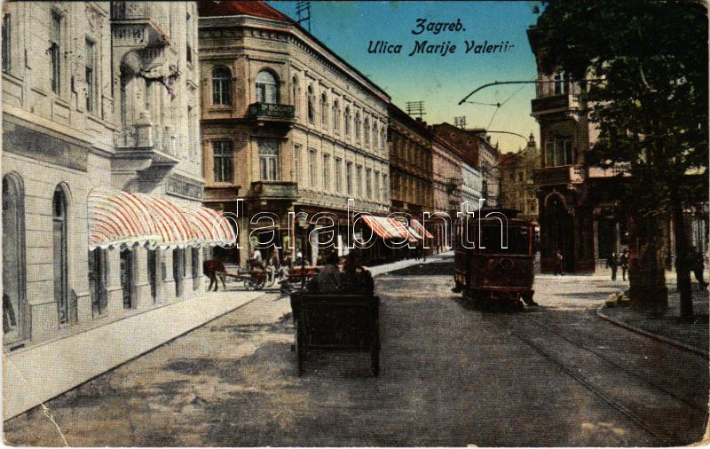 1915 Zagreb, Zágráb; Ulica Marije Valerije / street view, tram, shops ... https://www.darabanth.com/de/438-Fernauktion/438.0/Ansichtskarten/Kroatien~2500012/1915-Zagreb-Zagrab-Ulica-Marije-Valerije-street-view-tram-shops-EB~II2857455