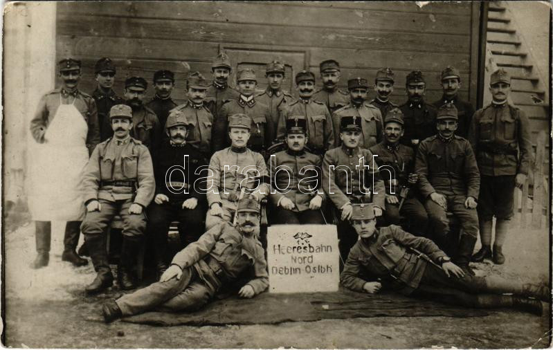 1917 Heeresbahn Nord / WWI Austro-Hungarian K.u.K. military, soldiers ... https://www.darabanth.com/de/438-Fernauktion/438.0/Ansichtskarten/Militaria~2500069/1917-Heeresbahn-Nord-WWI-Austro-Hungarian-KuK-military-soldiers-at-the-railway-station-photo-~II2857255