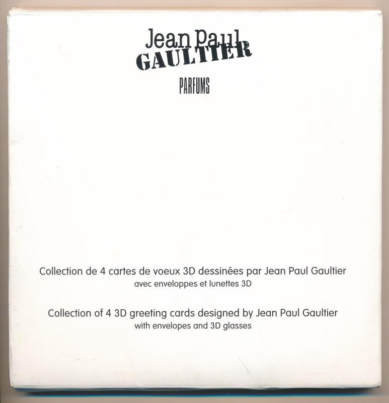 Beschreibung: Jean Paul Gaultier Parfums - 4 db modern 3D képeslap 3D szemüveggel Jean Paul Gaultier által tervezve / 4 modern 3D postcards with glasses, designed by Jean Paul Gaultier